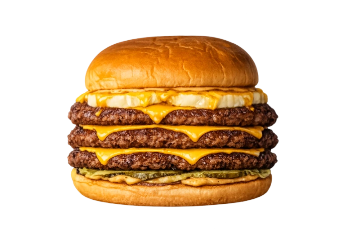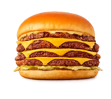 Le smash ultime avec quatre steaks frais smashés, cheddar fondant et garniture fraîche pour une expérience exceptionnelle.