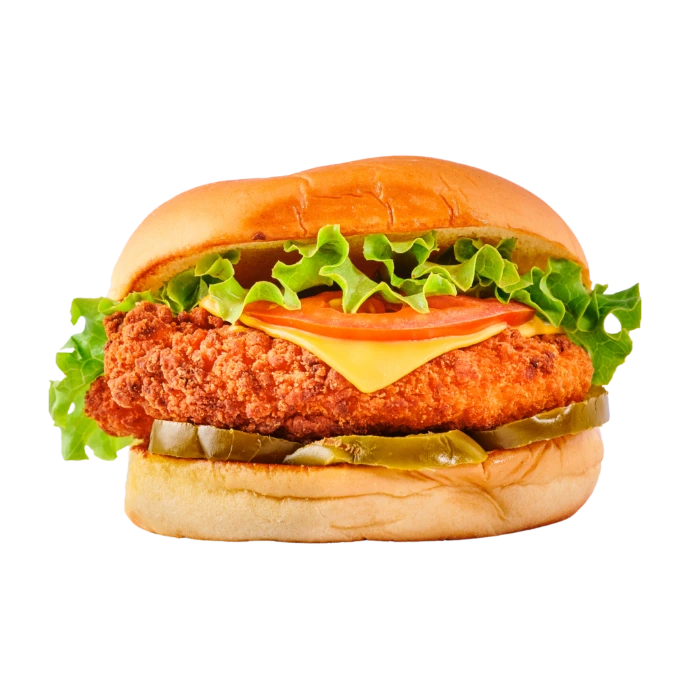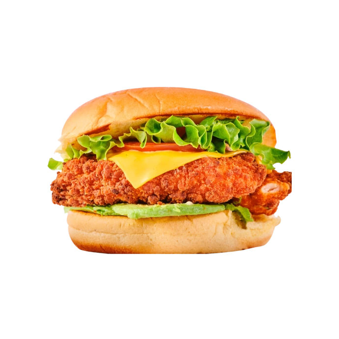 Un filet de poulet croustillant accompagné de cheddar fondant et garniture fraîche dans un bun moelleux.