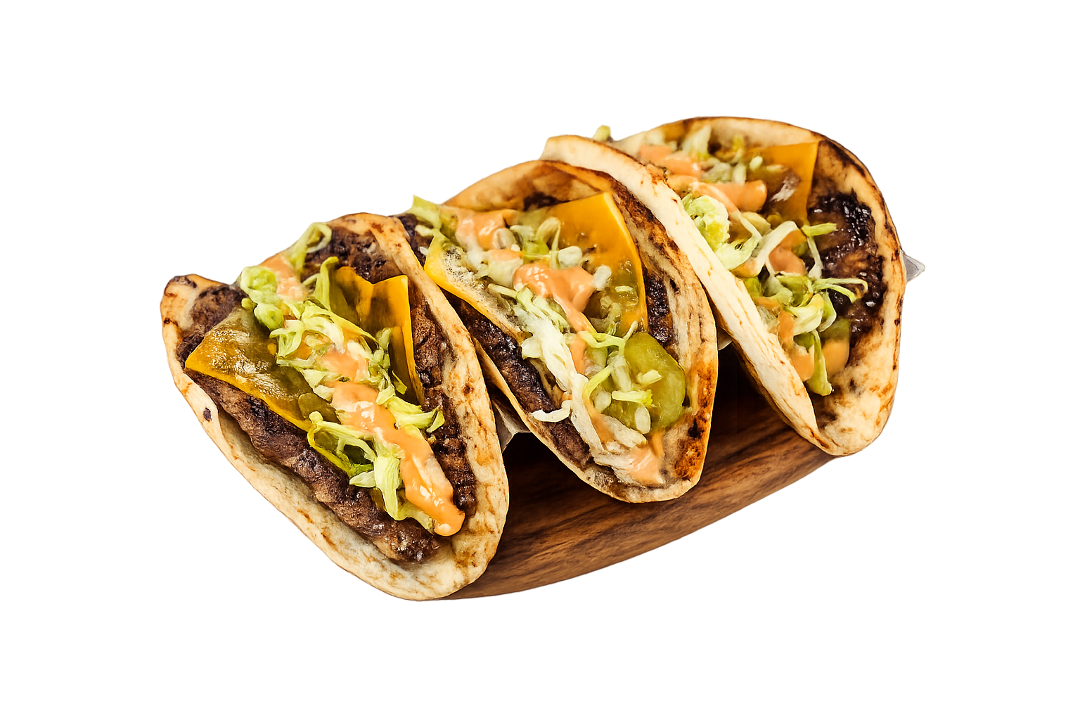 Deux tacos smash savoureux, garniture fraîche et sauce signature. LA VERSION HONEY OU CRISPY EST DISPONIBLE A 7.50€