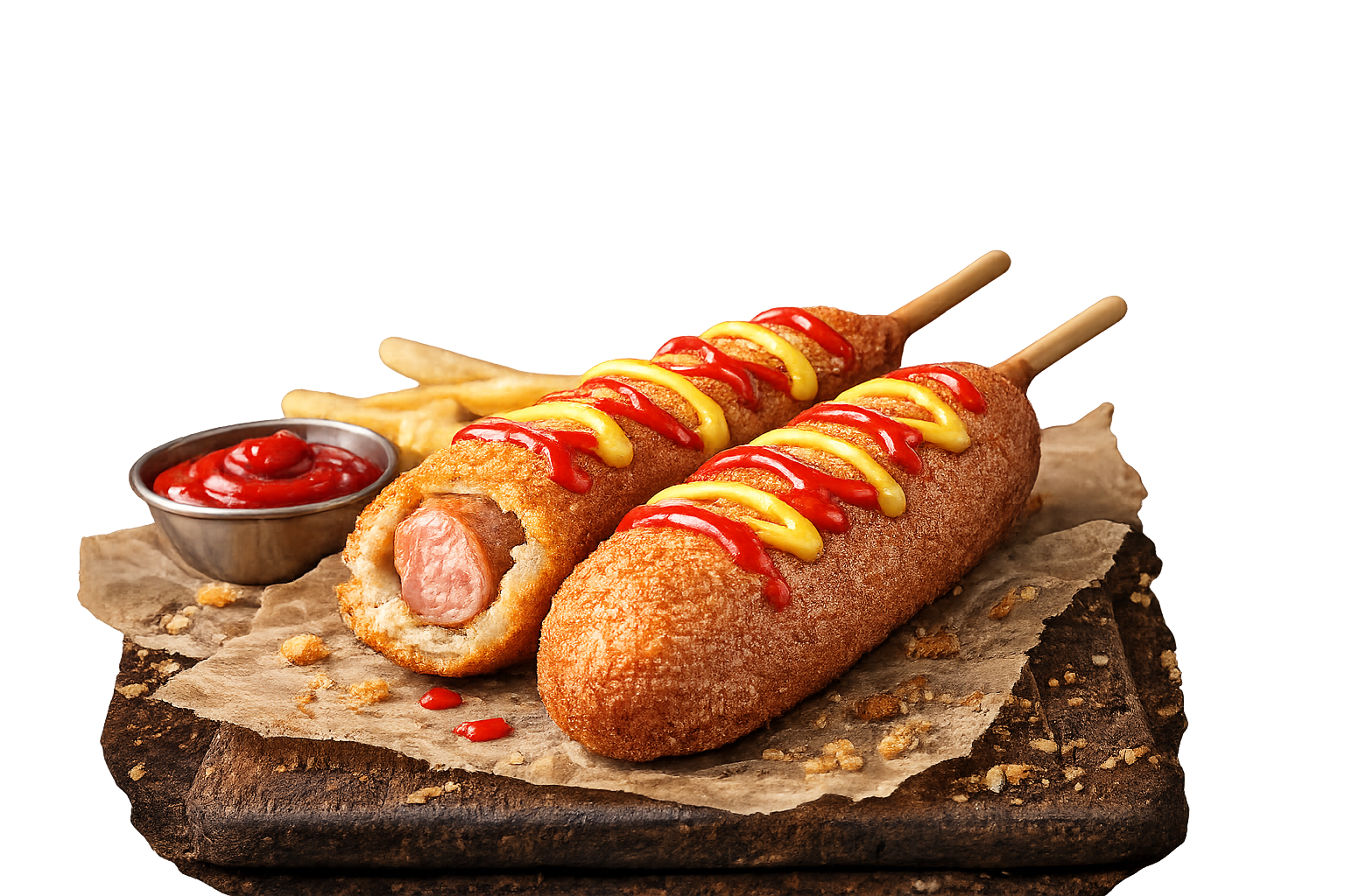- CORN DOG — 6,50€Gourmand et réconfortant