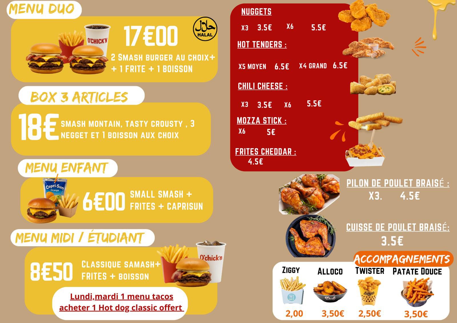 Un burger croustillant et fondant, tenders de poulet dorés, cheddar fondant et sauce gourmande.